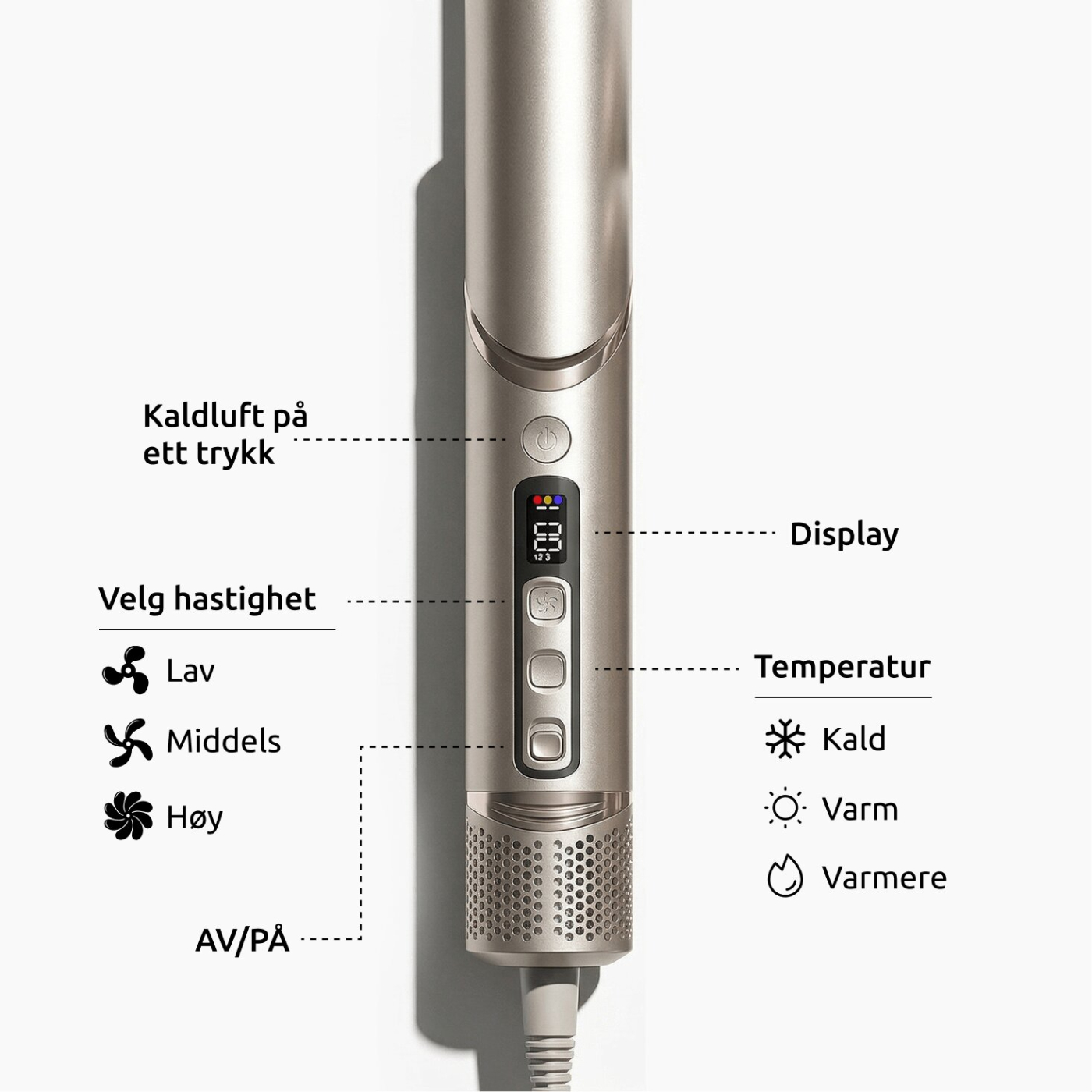 Med hele åtte utskiftbare munnstykker kan du tørke, rette, krølle, gi volum eller definere bølger – denne erstatter alle stylingverktøyene dine i ett og samme produkt. Du sparer penger og tid samtidig som du får et hår som vil tiltrekke komplimenter!.jpg)