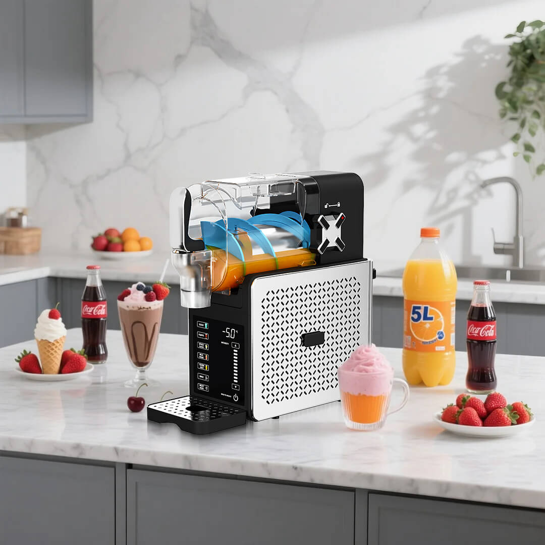 Slushmaster – Slush, Smoothies, Iskaffe, Frozen Cocktails gir deg muligheten til å lage alt fra klassisk slush til eksotiske drinker, rett hjemme på kjøkkenbenken. Den kombinerer stor kapasitet, rask nedkjøling og brukervennlig design – perfekt til sommerfester, bursdager eller en iskald hverdagsluksus.